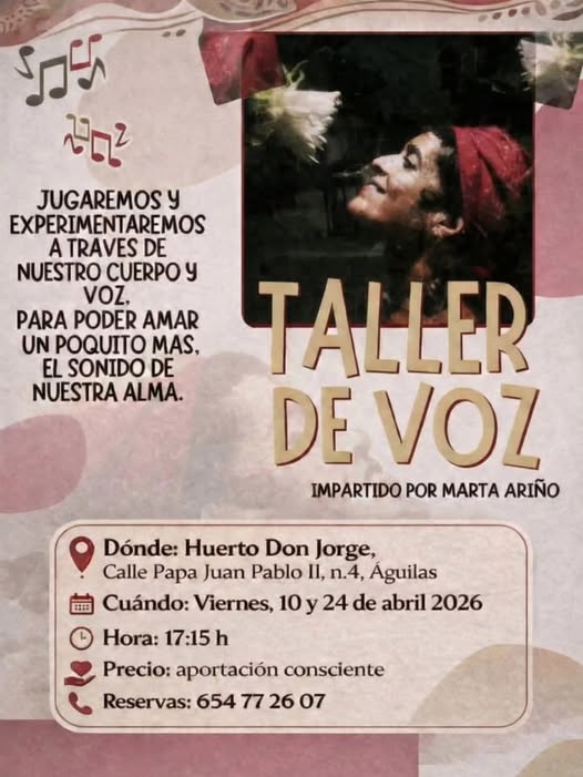 Taller de Voz. Impartido por Marta Ariño. Los Viernes, 10 y 24 de Abril 2026