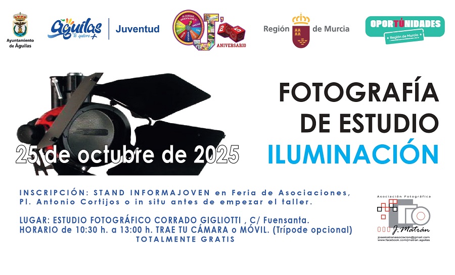Taller de Fotografía de Estudio ILuminación. En el Estudio Fotográfico Corrado Gigliotti, C/ Fuensanta. El Sábado 25/10/2025.