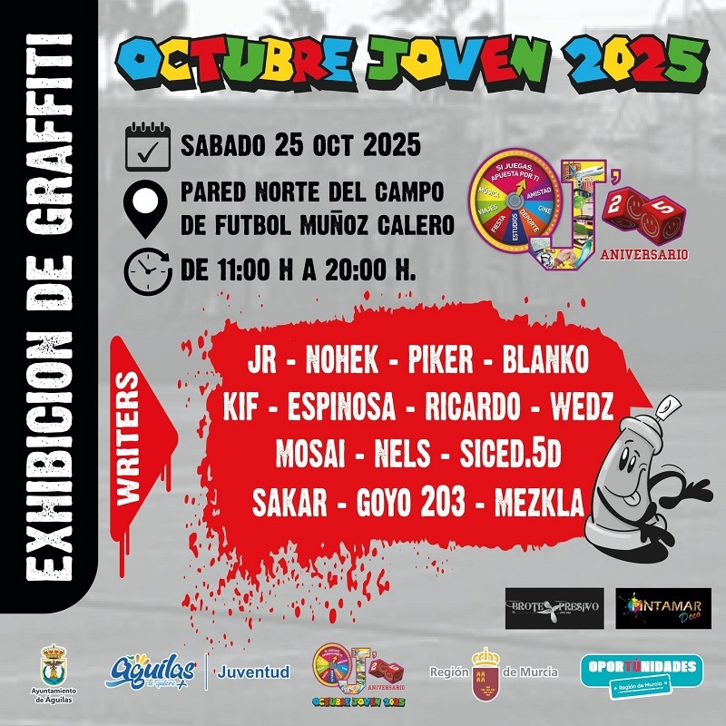 Exhibición de Graffiti. En la Pared Norte del Campo de Fútbol Muñoz Calero. El Día 25/10/2025.