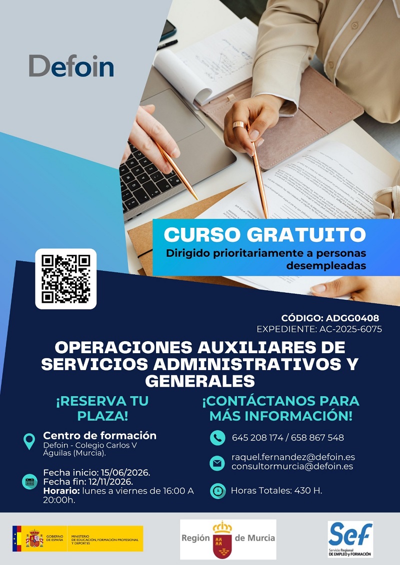 Curso Gratuito: Operaciones Auxiliares y Servicios Administrativos y Generales. Plazo de Inscripción: Abierto.