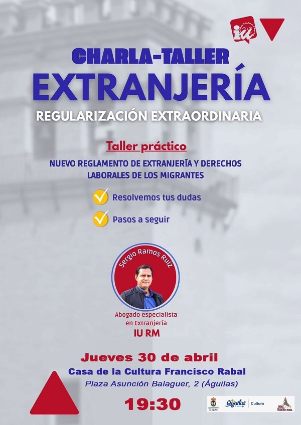 Charla-Taller Extranjería Regularización Extraordinaria. En la Casa de la Cultura Francisco Rabal. El Día 30/04/2026.