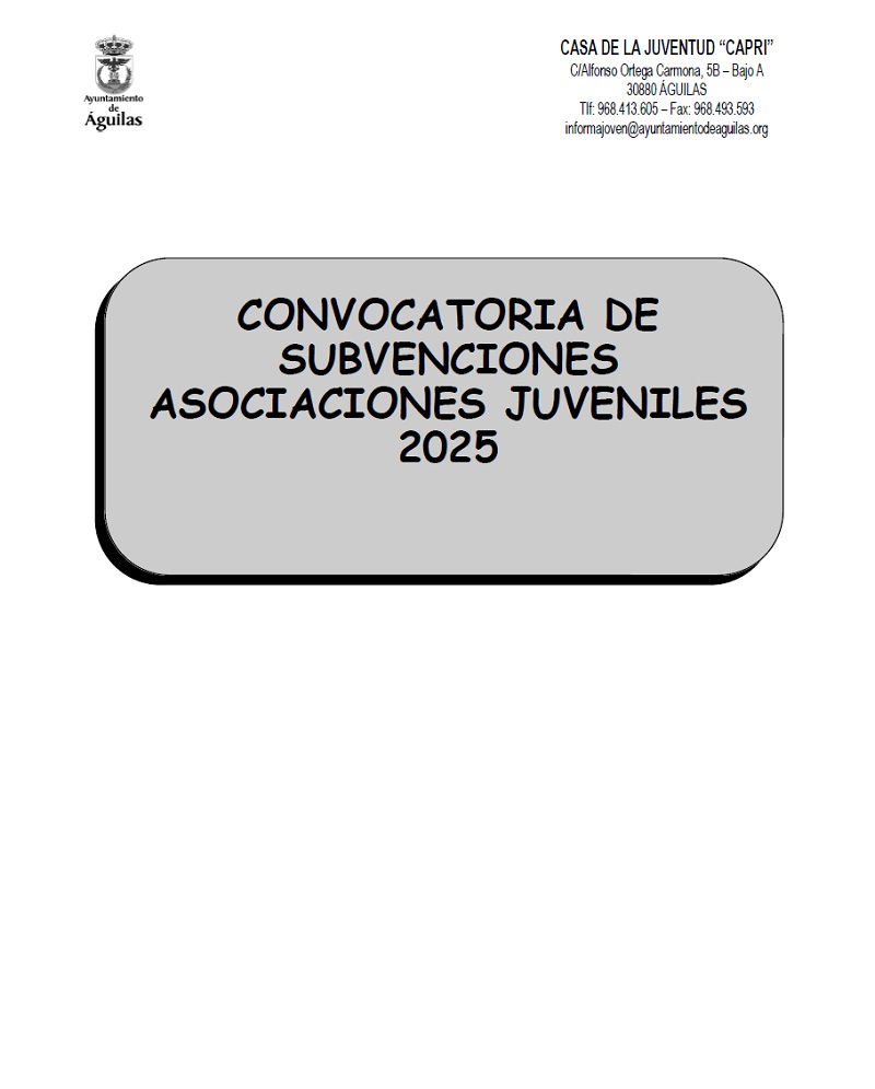 Subvenciones a Asociaciones y proyectos juveniles. Ayuntamiento de Águilas. Plazo: Hasta 21/11/2025 **PLAZO CERRADO**
