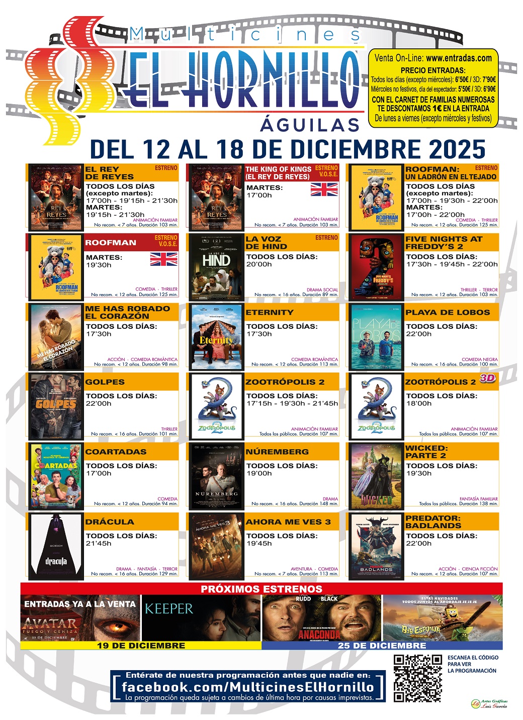 Multicines el Hornillo Águilas. Fecha: Del viernes 12 al jueves 18 de Diciembre de 2025.