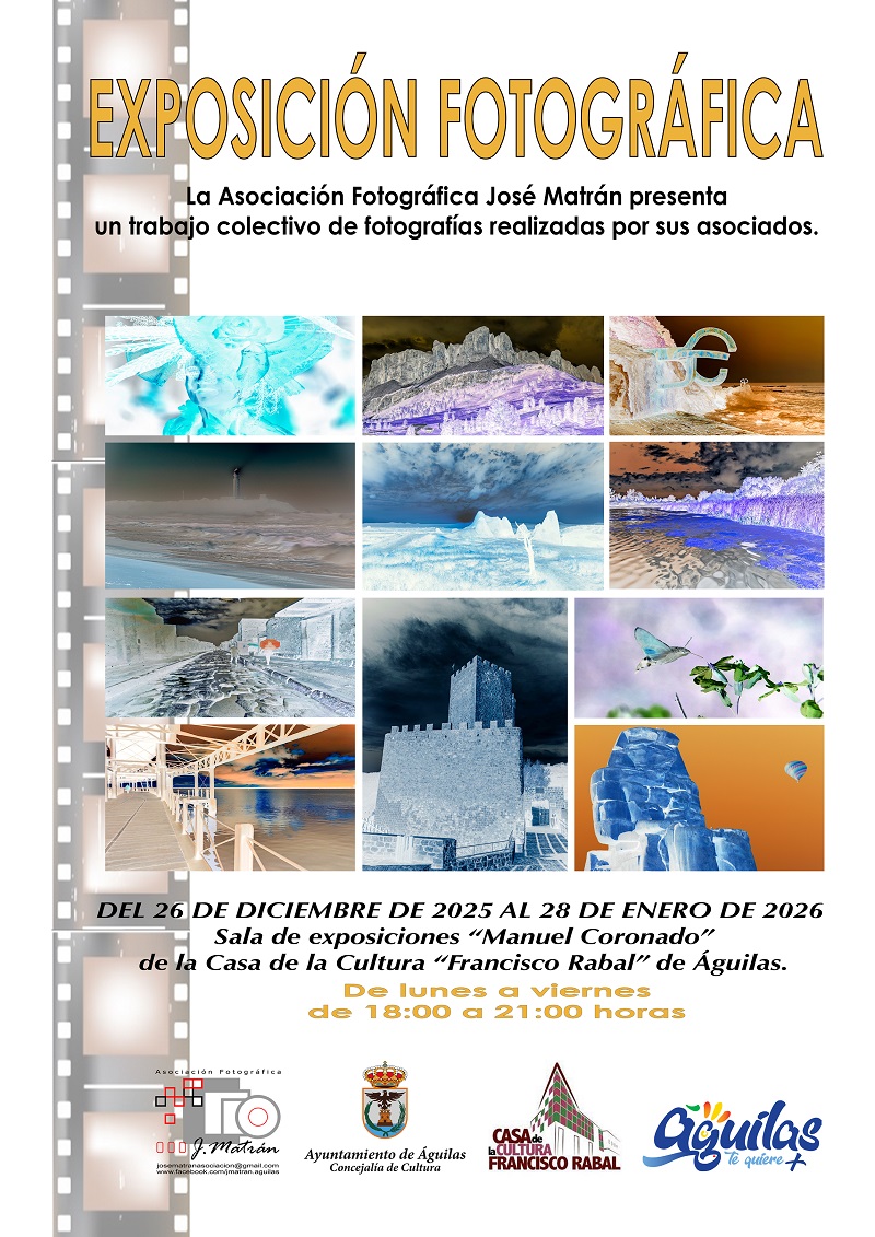Exposición Fotográfica. En la Sala de Exposiciones "Manuel Coronado" de la Casa de la Cultura "Francisco Rabal" de Águilas. Del 26/12/2025 al 28/01/2026.