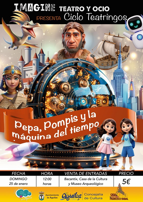 Teatro Infantil: Pepa, Pompis y la máquina del tiempo. En la Casa de la Cultura Francisco Rabal. El Día 25/01/2026.
