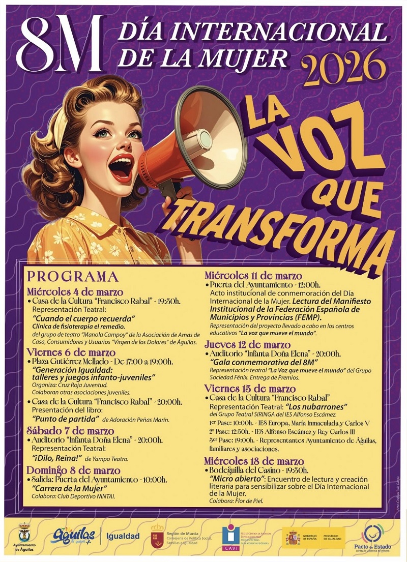8M Día Internacional de la Mujer 2026. La Voz que transforma. Los Días 4, 6, 7, 8, 11, 12, 13 y 18 de Marzo de 2026.