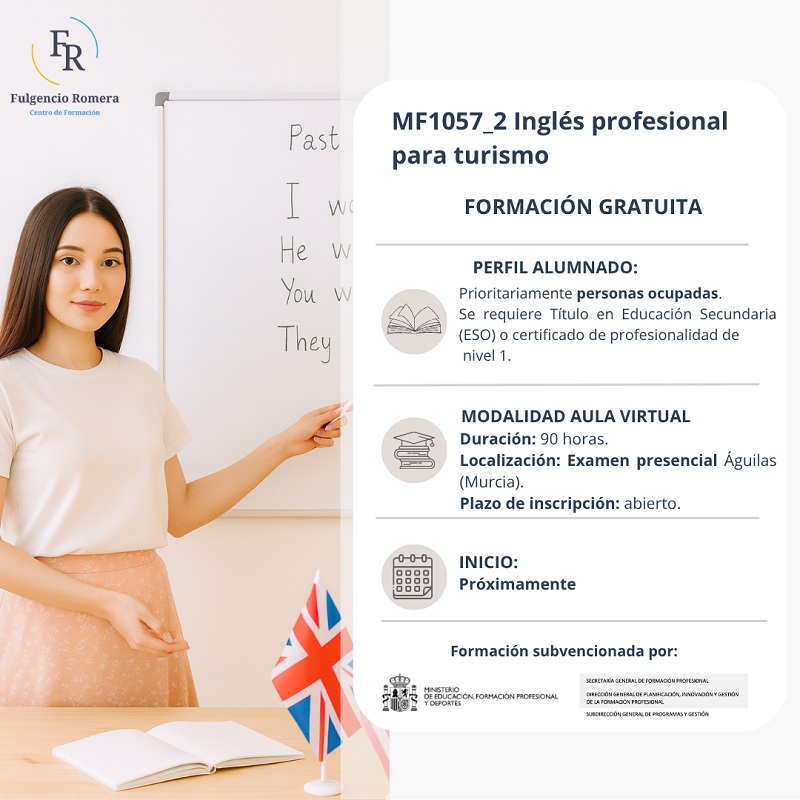 Inglés profesional para turismo. Plazo de Inscripción: Abierto.
