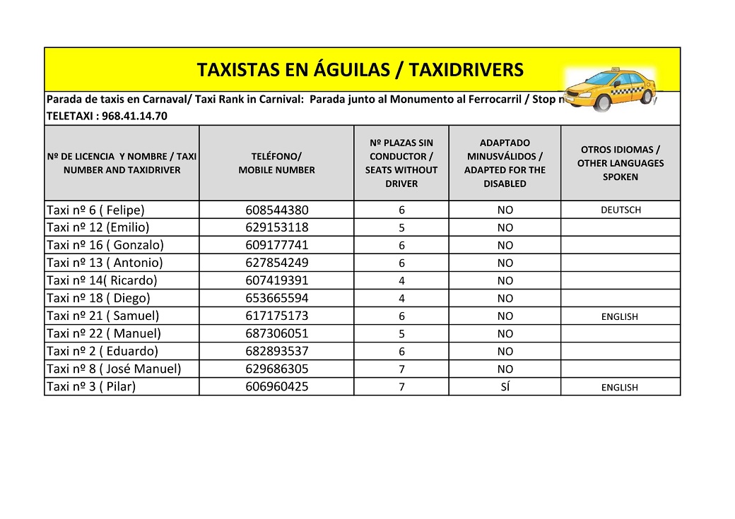Servicio de taxis en Águilas.