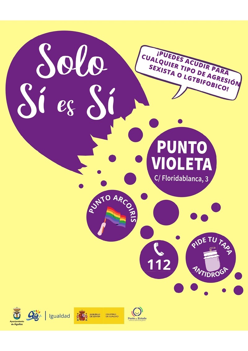 La Concejalía de Igualdad del Ayuntamiento de Águilas vuelve a poner en marcha el Punto Violeta y Arcoíris durante las noches del Carnaval 2026.
