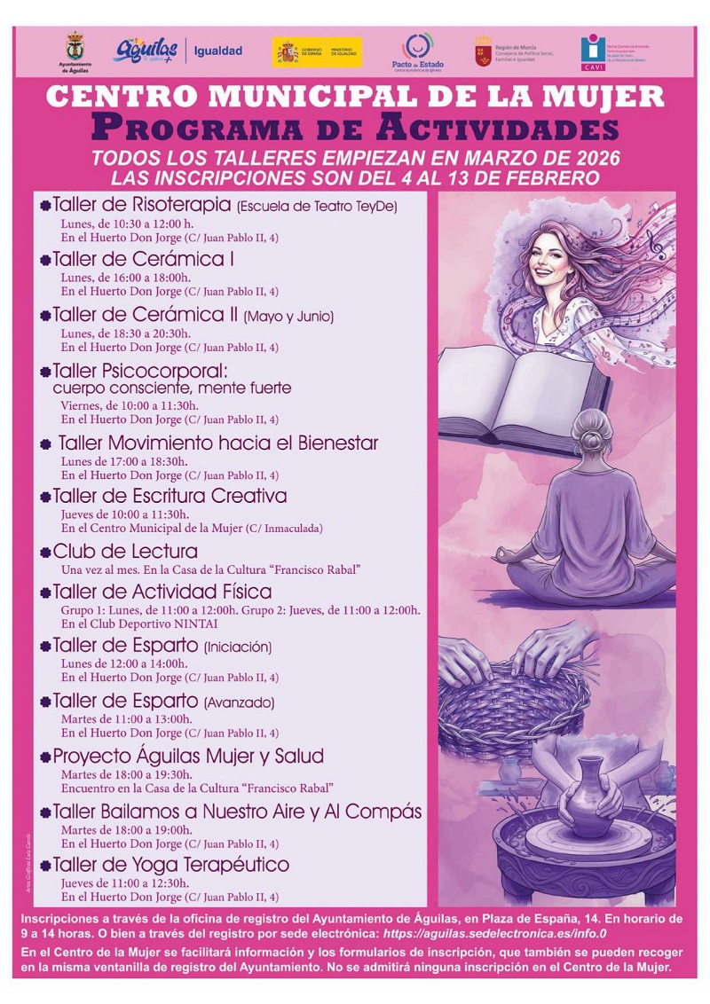 Actividades trimestrales del Centro de la Mujer. Plazo de Inscripción del 04 al 13 de febrero de 2026.