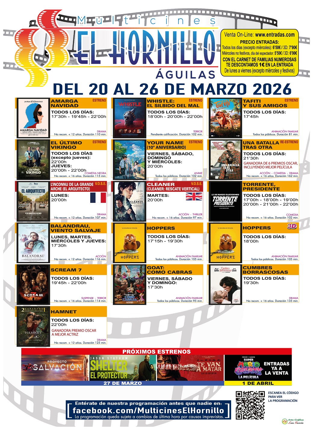 Multicines el Hornillo Águilas. Fecha: del Viernes 20 al jueves 26 de marzo de 2026.