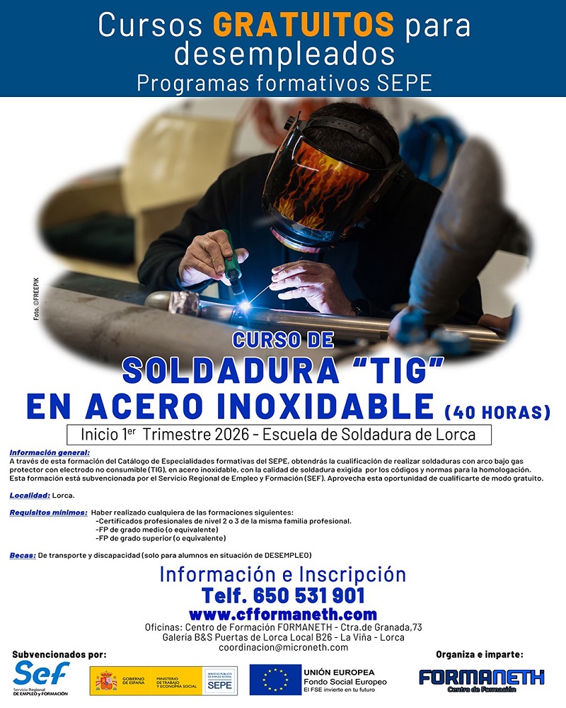 Curso de Soldadura "TIG" en acero inoxidable. Plazo: Abierto.
