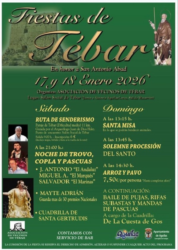 Fiestas Patronales de Tébar. Los Días 17 y 18 de Enero de 2026.