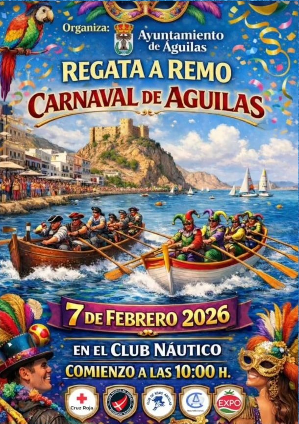 Regata a Remo Carnaval de Águilas. Más de 16 equipos y alrededor de 130 deportistas llenarán de emoción, color y espíritu deportivo la bahía de Águilas.