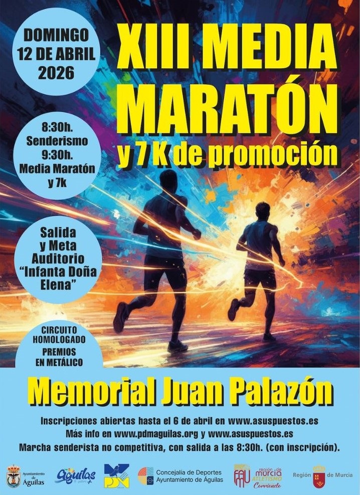 XIII Media Maratón Ciudad de Águilas y 7K Promoción 2026. En el Auditorio Municipal. El Día 12/04/2026.